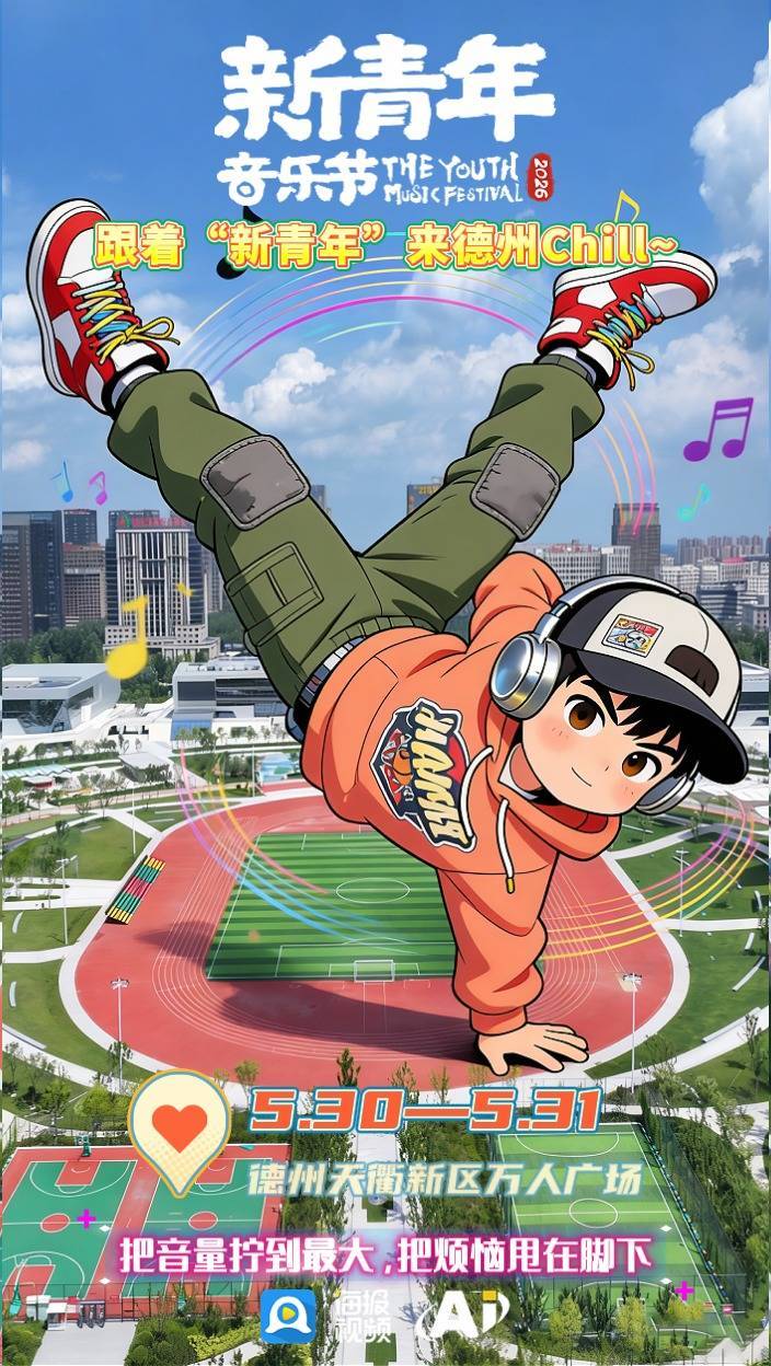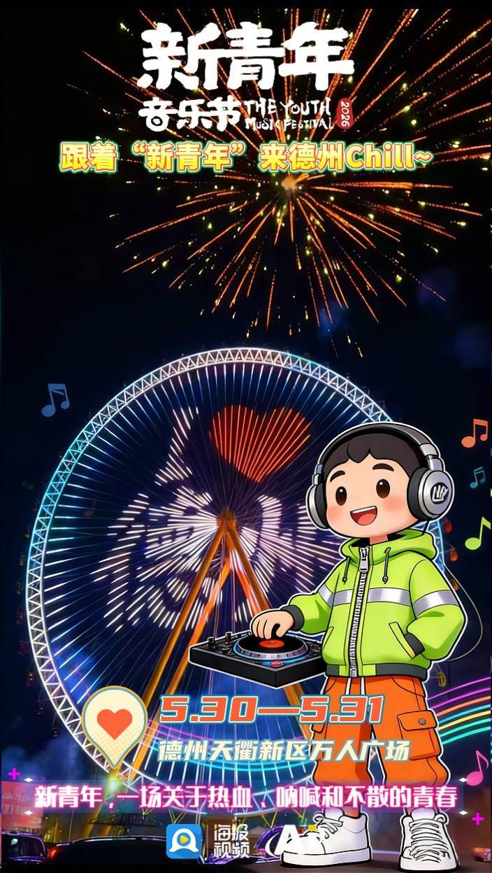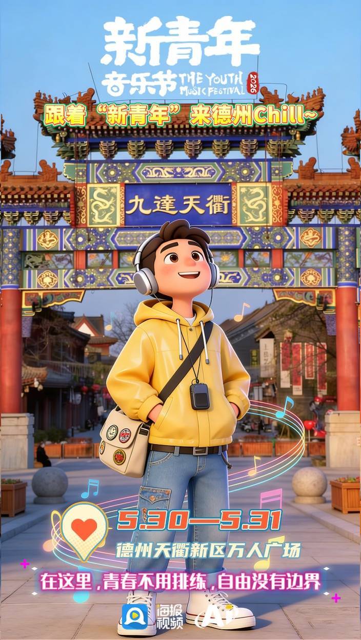 金辰地产·2026德州天衢新区新青年音乐节由山东省互联网传媒集团、德州工程职业学院、德州天衢新羿文化发展有限公司主办,新青年(山东)文化产业有限公司、大众网·德州承办。本次活动由齐鲁高品质住宅创领者—金辰地产总冠名,透心凉心飞扬的「雪碧」、中国禽类制品高端品牌—德州扒鸡®特约赞助。5月30—31日,齐聚德州天衢新区万人广场(德州工程职业学院南侧),继续做快乐小孩,一起童年。你好新青年,我们现场见。
